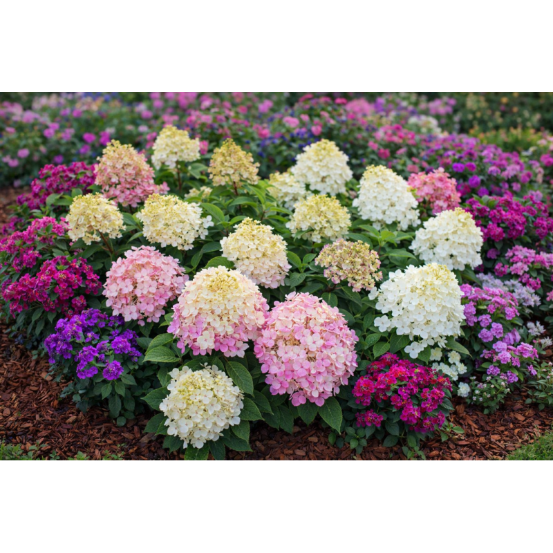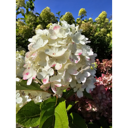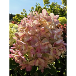 Okazałe,efektowne kwiatostany mają kolor seledynowo-zielony, w kolejnym etapie kwitnienia kremowo-białe a pod koniec lata osiągają ciemno różowy kolor.