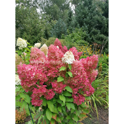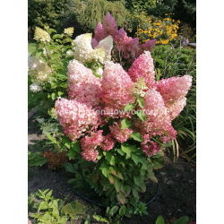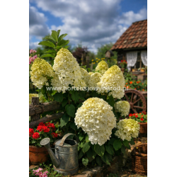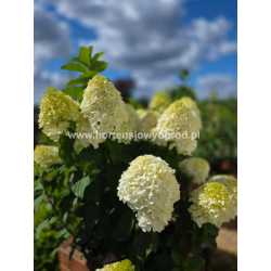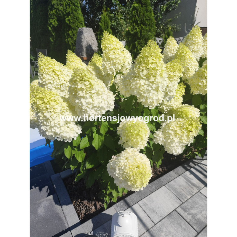 Kwiatostany bardzo duże, dorastające do 40 cm długości, limonkowo-zielone, w pełni kwitnienia śnieżnobiałe, a pod koniec lata różowiejące.