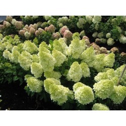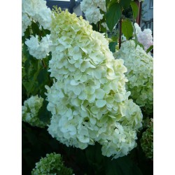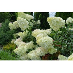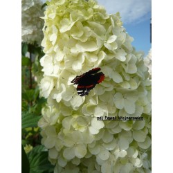 Odmiana o ogromnych, białych kwiatostanach lekko różowiejących w trakcie kwitnienia. Rozłożysty krzew dorastający do wysokości 2 m i podobnej szerokości.