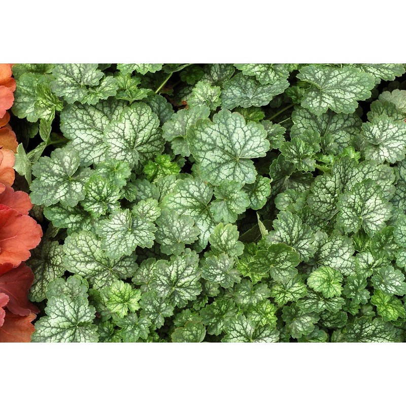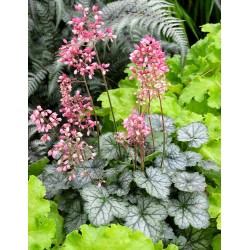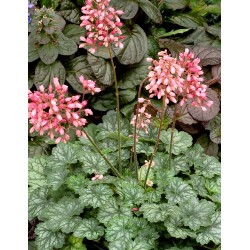 Osiąga zaledwie 15-25 cm wysokości i 20-25 cm szerokości. Ma niewielkie, powcinane, ciemnozielone liście pokryte cudowną, srebrną powłoką, uwidaczniającą wyraziste, malownicze żyłkowanie. Roślina kwitnie od maja do października. Na wysokich, bezlistnych pędach pojawiają się wówczas śliczne, bladoróżowe kwiaty. W miarę dojrzewania, zmieniają one odcień na ciemniejszy. Zebrane w wiechy drobne dzwoneczki zdobią żurawkę wyjątkowo długo: od wiosny, przez całe lato, aż do wczesnej jesieni. Jest to wyjątkowa roślina do nasadzeń na pierwszym planie rabaty, do ogródków skalnych czy do uprawy w pojemnikach. Oryginalny pokrój i niezwykłe ubarwienie żurawki sprawiają, że jest to cenna roślina do przydomowych ogrodów czy balkonowych donic.