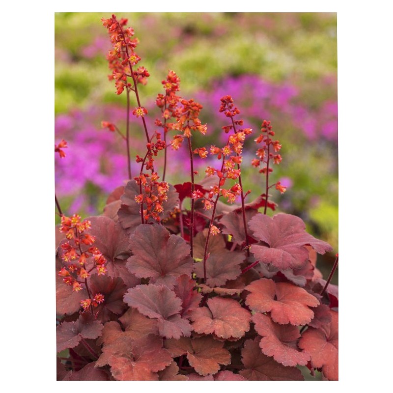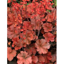 Żurawka Cherry Cola (Heuchera 'Cherry Cola') to popularna bylina ozdobna, która wyróżnia się czerwonobrązowymi, lekko powcinanymi liśćmi, które dobrze zimują i zachowują atrakcyjny kolor przez cały sezon.